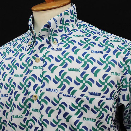シワになりにくく、吸汗速乾、ストレッチ性の人気の生地素材にオリジナルの柄を染めて仕上げました。